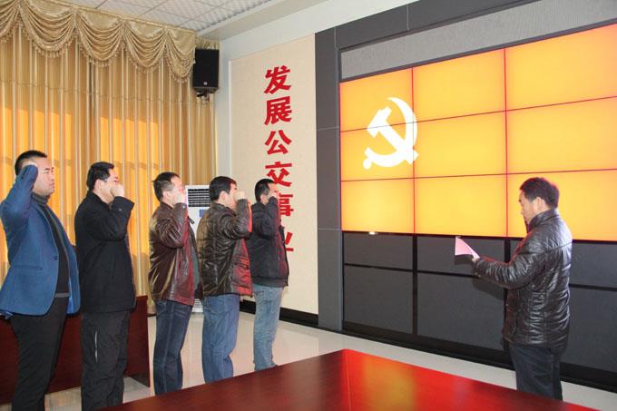 12月23日,市公交公司組織2012年下半年新入黨的黨員進(jìn)行了入黨宣誓儀式暨培訓(xùn)活動(dòng)?;顒?dòng)由黨辦主任王修云主持,公司黨委副書(shū)記劉海參加活動(dòng)并做了動(dòng)員講話(huà)。