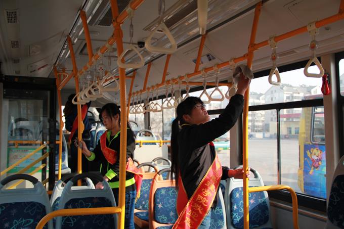 2013年3月9日上午,市公交公司汽車一隊(duì)聯(lián)合東營市職業(yè)學(xué)院會(huì)計(jì)學(xué)院的大學(xué)生開展了義務(wù)活動(dòng)。參加義務(wù)活動(dòng)的38人分為兩個(gè)活動(dòng)小組,一組乘坐公交車上路為老、弱、病、殘、孕等特需乘客服務(wù),以及在站點(diǎn)疏導(dǎo)乘客;另一組在汽車一隊(duì)駐地幫助擦洗公交車,清掃車廂衛(wèi)生。大家工作起來井然有序,有條不紊,都認(rèn)真投入其中,尤其活躍在車廂為乘客服務(wù)的志愿者們,更是得到了乘客的一致好評(píng),成為公交車上一道亮麗的風(fēng)景。