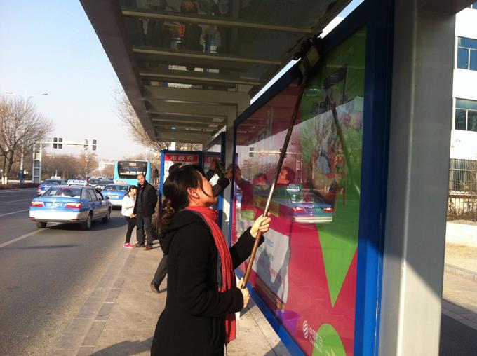 藍(lán)天麗日久暌違,馬啟新元萬(wàn)象輝。為迎接春節(jié)到來(lái),給全市市民度過(guò)一個(gè)歡樂(lè)、祥和的春節(jié)提供舒適的交通出行環(huán)境,近日,市公交公司組織開(kāi)展中心城公交候車(chē)設(shè)施專(zhuān)項(xiàng)清洗活動(dòng)。各機(jī)關(guān)科室、車(chē)隊(duì)、保修廠(chǎng)等單位按照公司統(tǒng)一部署,對(duì)責(zé)任區(qū)域內(nèi)的公交候車(chē)設(shè)施進(jìn)行了清洗,重點(diǎn)對(duì)公交站牌、公交候車(chē)亭小廣告及亂涂亂畫(huà)等進(jìn)行清潔。