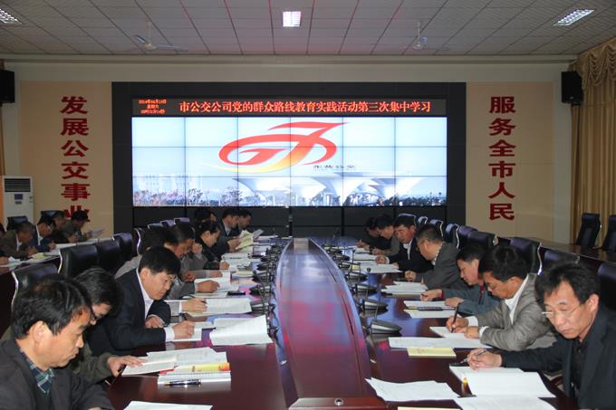 為深入推進(jìn)教育實(shí)踐活動(dòng)開展,加強(qiáng)黨的群眾路線理論武裝,市公交公司黨的群眾路線教育實(shí)踐活動(dòng)第三次集中學(xué)習(xí)于4月19日組織開展。主要學(xué)習(xí)了《厲行節(jié)約、反對(duì)浪費(fèi)》重要論述摘編和《黨的群眾路線教育實(shí)踐活動(dòng)學(xué)習(xí)文件選編》等材料。全體黨員認(rèn)真聆聽,詳細(xì)記錄,堅(jiān)持原汁原味、原原本本,通過系統(tǒng)研讀,實(shí)現(xiàn)理論提升、思想升華。