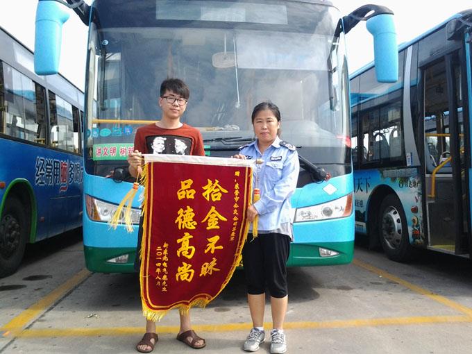 7月31日,鹿先生不慎將錢包遺漏在164路公交車上,于是急忙來到車隊(duì)尋找,該路駕駛員蘇愛軍將裝有1500元現(xiàn)金、身份證、銀行卡和工作證的錢包物歸原主,鹿先生非常感動(dòng),送來錦旗表示感謝。