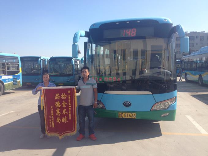 9月3日,家住東營區(qū)史口鎮(zhèn)寨王村的王國梁先生乘坐148路車外出,下車后發(fā)現(xiàn)錢包遺忘在公交車上。汽車四隊駕駛員郭嘉撿到了王國梁先生遺失的錢包,發(fā)現(xiàn)內(nèi)有身份證、銀行卡、現(xiàn)金一萬二千余元,忙將其上交車隊暫時保管,車隊及時聯(lián)系失主并將失物完璧歸趙。王國梁接過失而復得的錢包顯得意外而又驚喜,執(zhí)意要給公交車駕駛員郭嘉師傅酬金3000元表示感謝,被她婉言謝絕了。翌日,王國梁拿著一面寫有“拾金不昧、品德高尚”的錦旗來到車隊,感謝郭嘉師傅拾金不昧的高尚品德。