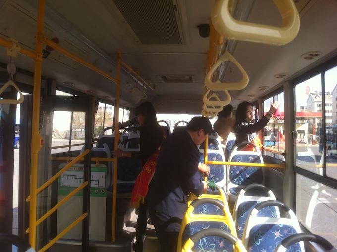 來自東營市職業(yè)學(xué)院會計學(xué)院的22名大學(xué)生和汽車一隊(duì)職工共計34人,分成兩個小組,一組乘坐103路公交車幫助疏導(dǎo)乘客,為特需乘客服務(wù);一組幫助駕駛員打掃車輛衛(wèi)生,清潔服務(wù)設(shè)施。本次活動受到乘客們的廣泛好評,同時也提升了大家的奉獻(xiàn)意識和社會責(zé)任感,進(jìn)一步弘揚(yáng)了雷鋒精神,培養(yǎng)了大家關(guān)愛他人、服務(wù)社會的優(yōu)良品質(zhì)。