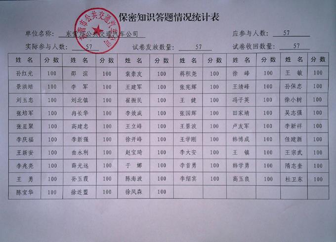 今年是新修訂保密法頒布5周年,保密法實(shí)施條例頒布1周年,也是全國“六五”保密普法教育收官之年。為進(jìn)一步增強(qiáng)公司管理干部保密法制觀念,提升管理干部綜合管理水平,市公交公司于6月5日至10日組織公司57名管理干部參加了全省保密知識答題活動。答題方式采取試卷答題卡方式進(jìn)行,合格率均達(dá)到了100%。