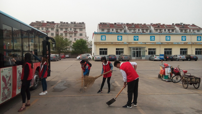 來自東營職業(yè)學院青年志愿者協(xié)會的學生和市公交公司汽車一隊職工共計30余人,分成兩個小組,一組打掃停車場衛(wèi)生,撿拾地上果皮紙屑,另外一組幫助駕駛員擦拭車身,清掃車廂衛(wèi)生。大家干得熱火朝天,不到兩個小時,公交車和停車場被大家打掃得干干凈凈。