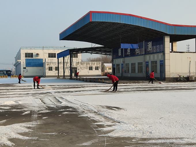 經(jīng)過一個(gè)多小時(shí)的奮戰(zhàn),大家將站內(nèi)的主要出入口和道路的積雪全部清掃干凈。雖然大家弄濕了鞋子、弄臟了衣服,但是看著為客戶開辟的這條暢通之路,每個(gè)人臉上都洋溢著自豪的笑容。