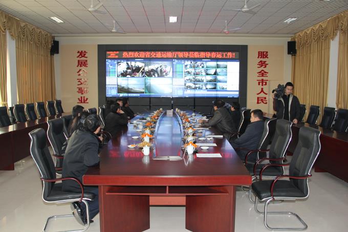 省交通運輸廳總工程師伊大邁一行,首先來到汽車一隊駐地,對公交運行安全方面進行了詳細的了解,實地查看了安全叮囑崗,并叮囑車隊工作人員認(rèn)真做好叮囑工作;隨后又來到東營公交智能調(diào)度指揮中心進行了座談。市公交公司經(jīng)理朱新民向省廳各位領(lǐng)導(dǎo)作了春運工作匯報,工作人員將智能調(diào)度系統(tǒng)的部分功能向各位領(lǐng)導(dǎo)進行了詳細的講解和演示。