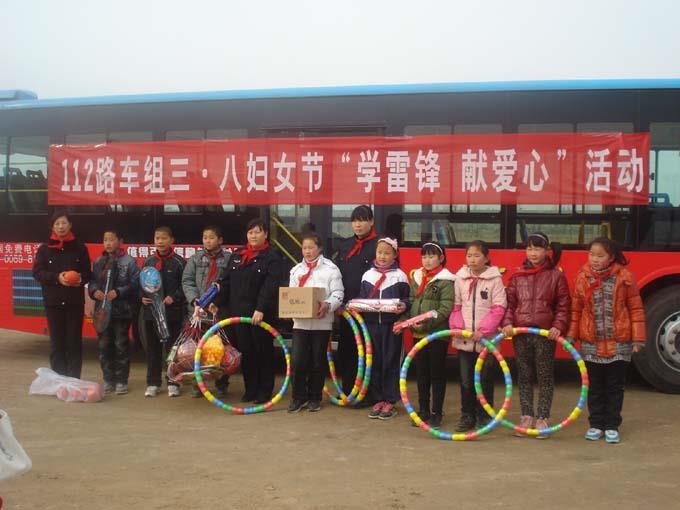 當(dāng)前,“學(xué)習(xí)雷鋒同志,弘揚(yáng)雷鋒精神”活動(dòng)正在全國上下如火如荼的進(jìn)行。三、八節(jié)前夕, 112路的姐妹們就謀劃著用本線路在公司“文明服務(wù)示范線路”評(píng)比中獲得的獎(jiǎng)金,在三八婦女節(jié)當(dāng)天做點(diǎn)有意義的事,以“關(guān)注社會(huì)、奉獻(xiàn)愛心”的方式歡度自己的節(jié)日。最后一致商議決定,對(duì)大杜小學(xué)進(jìn)行捐助。